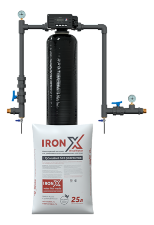В состав системы входит фильтрующая загрузка IronX – материал для эффективной очистки воды от железа, марганца и сероводорода. IronX очищает воду на высоких скоростях фильтрации.